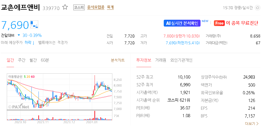 교촌에프앤비 주가 분석
