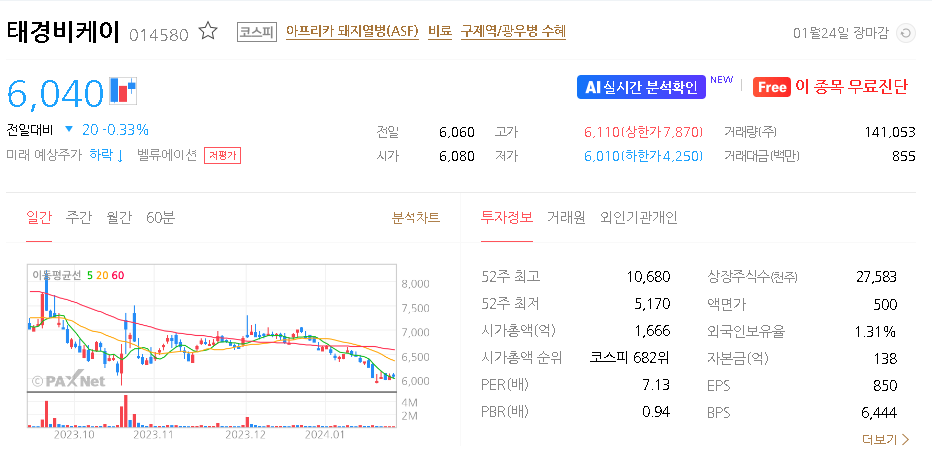 태경비케이 주가 분석