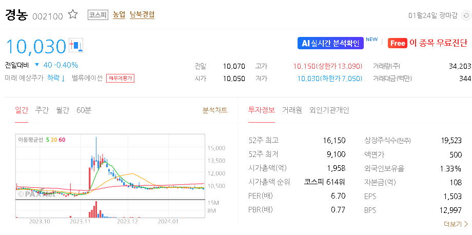 이 글에서는 경농 주가 전망과 목표 주가, 기업 정보에 대해서 설명합니다. 주식 투자에서 핵심은 미래의 기업 가치를 예상하고 선제적으로 움직이는 것입니다. 투자 대상을 결정하기 전에 현재 기업의 현황과 수치를 검토하는 것이 필요합니다. 경농 주식의 주요 현황과 투자 정보를 확인하시고 주식 투자에 도움이 될 만한 정보들을 모아 놓았으니 투자 시 참고하시기 바랍니다.