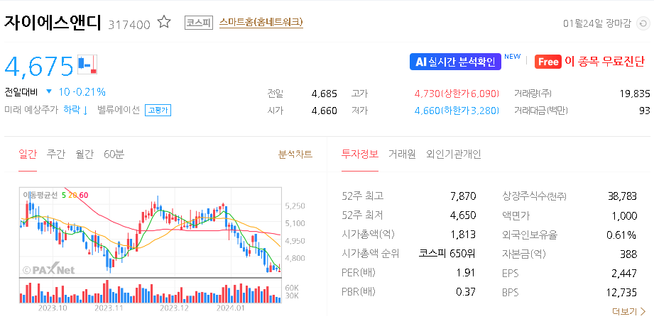 자이에스앤디 주가 분석