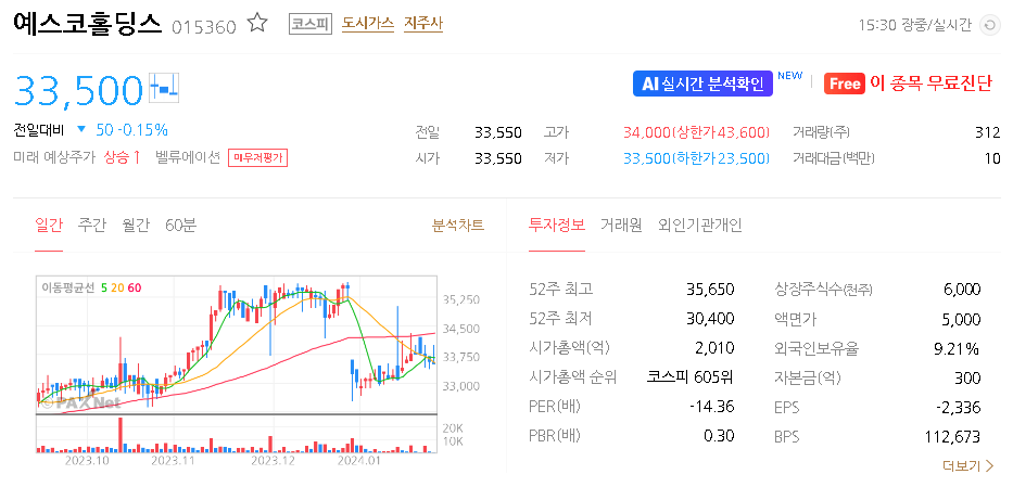예스코홀딩스 주식 결론