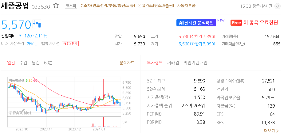 이 글에서는 세종공업 주가 전망과 목표 주가, 기업 정보에 대해서 설명합니다. 주식 거래에서 중요한 부분은 현재 기업 가치보다는 미래의 기업 가치를 예측하고 먼저 행동하는 것입니다. 투자할 종목을 고르기 전에 현재 기업의 상황과 지표를 살펴보는 것이 중요합니다. 세종공업 주식의 주요 현황과 투자 정보를 확인하시고 주식 투자에 도움을 줄 자료들을 모아 두었으니 투자 결정에 도움을 받으시길 바랍니다.