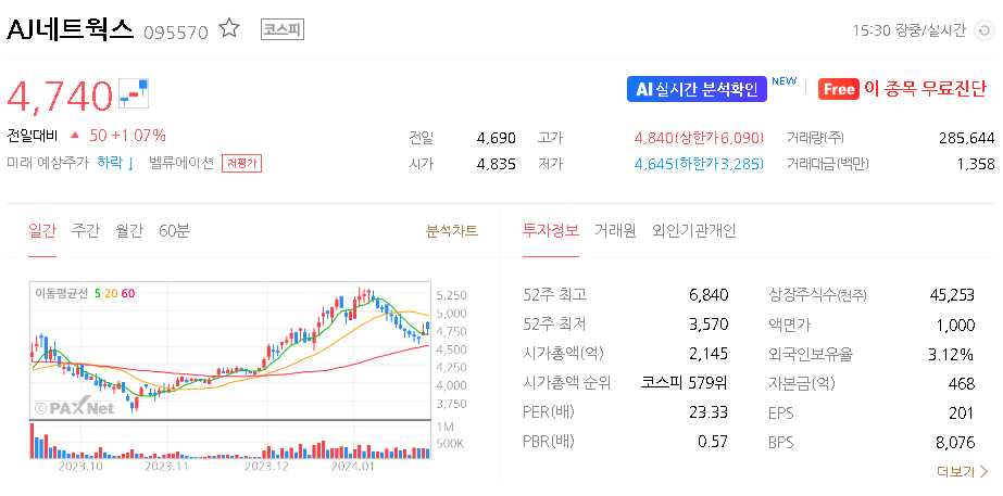 AJ네트웍스 주가 분석