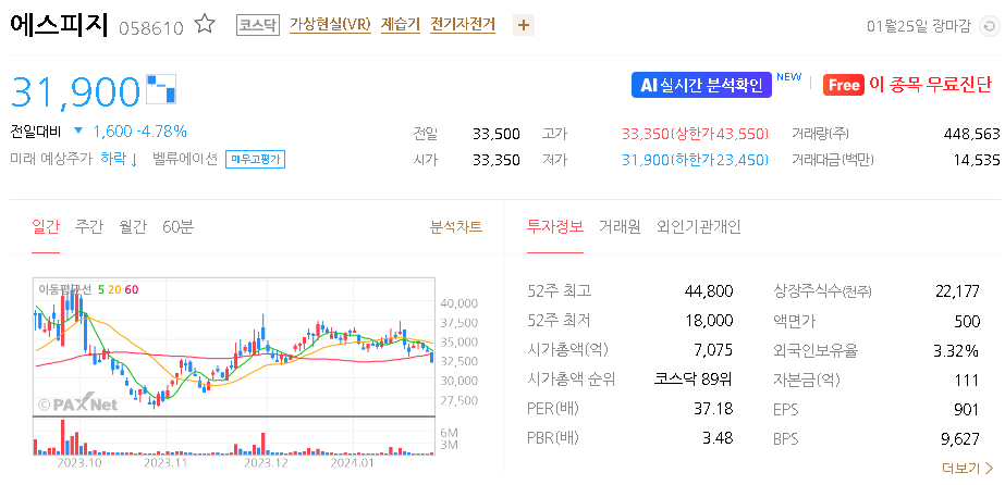 에스피지 주가 분석
