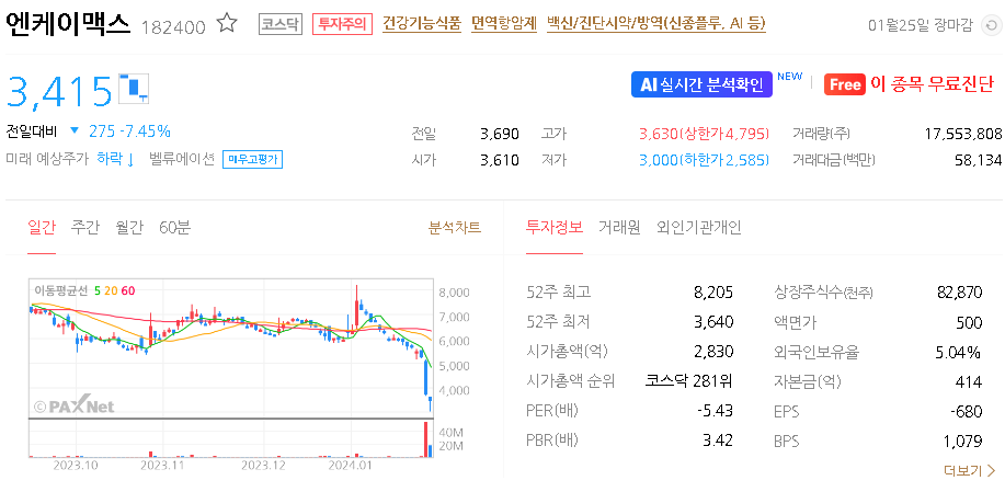 엔케이맥스 주가 분석