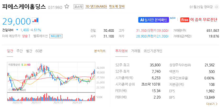 이 글에서는 피에스케이홀딩스 주가 전망과 목표 주가, 기업 정보에 대해서 설명합니다. 주식 거래에서 주목해야 할 점은 미래의 기업 가치를 예측하고 먼저 움직이는 것입니다. 투자 대상을 선택하기 전에 현재 기업 상황과 지표를 살펴보아야 합니다. 피에스케이홀딩스 주식의 주요 현황과 투자 정보를 확인하시고 주식 투자에 도움이 되는 정보들을 모아 제공하니 투자에 도움을 받으실 수 있을 것입니다.
