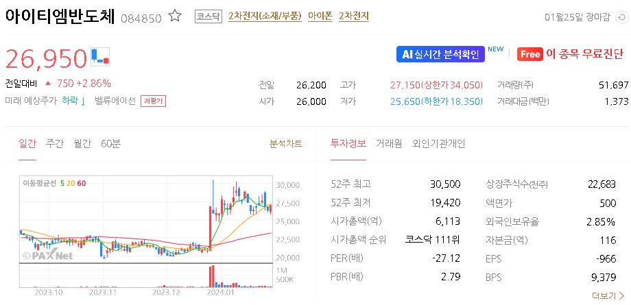 이 글에서는 아이티엠반도체 주가 전망과 목표 주가, 기업 정보에 대해서 설명합니다. 주식 시장에서 중요한 것은 미래의 기업 가치를 예측하고 선제적으로 움직이는 것입니다. 투자할 종목을 고르기 전에 현재 기업의 현황과 데이터를 확인하는 것이 필요합니다. 아이티엠반도체 주식의 주요 현황과 투자 정보를 확인하시고 주식 투자에 도움이 될 만한 정보들을 모아 놓았으니 투자를 고려하실 때 참고하세요.