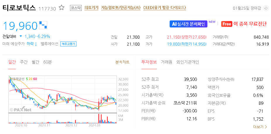 티로보틱스 주가 분석