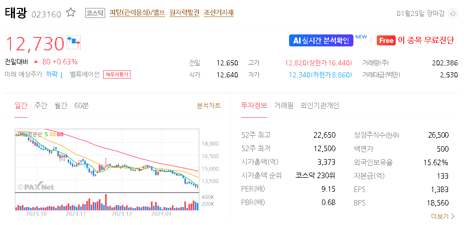 이 글에서는 태광 주가 전망과 목표 주가, 기업 정보에 대해서 설명합니다. 주식 거래에서 주목해야 할 점은 미래의 기업 가치를 예측하고 먼저 움직이는 것입니다. 투자 대상을 선택하기 전에 현재 기업 상황과 지표를 살펴보아야 합니다. 태광 주식의 주요 현황과 투자 정보를 확인하시고 주식 투자에 도움을 줄 자료들을 모아 두었으니 투자 결정에 도움을 받으시길 바랍니다.