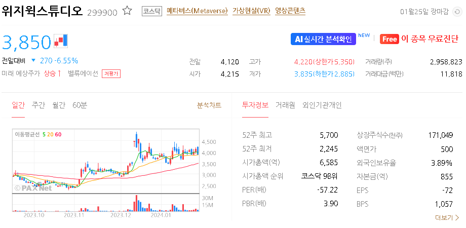 위지윅스튜디오 주가 분석
