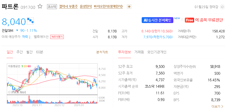 파트론 주가 분석