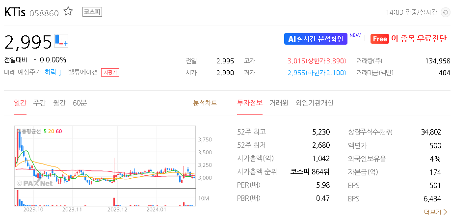 KTis 주가 분석
