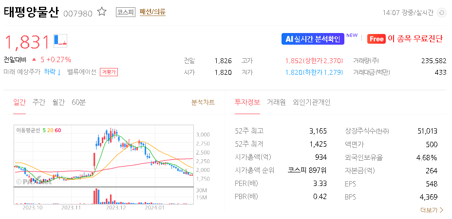 태평양물산 주가 분석