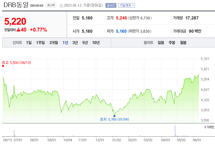 DRB동일 주가 분석