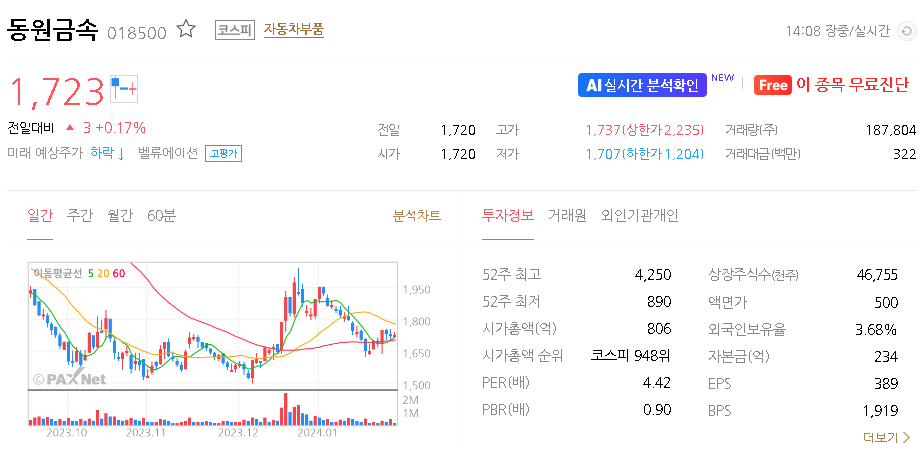 동원금속 주가 분석