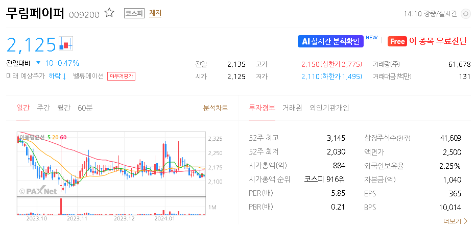 무림페이퍼 주가 분석