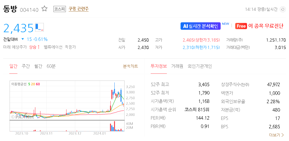 동방 주가 분석