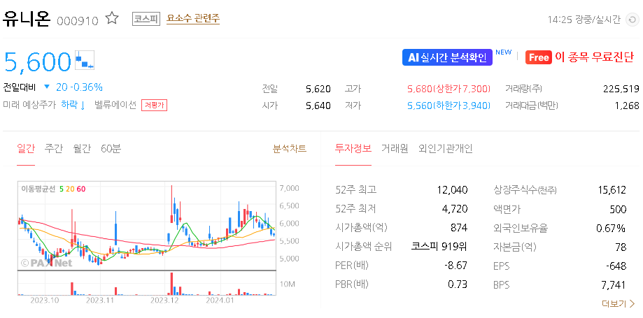 유니온 주가 분석