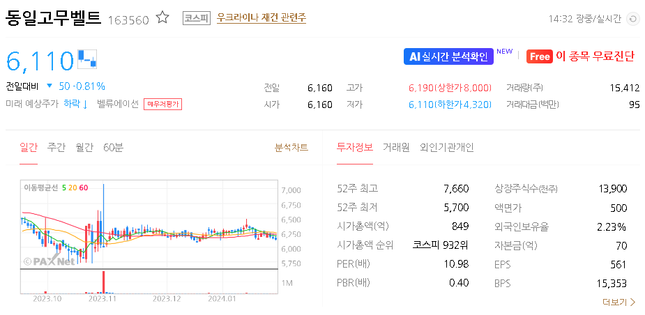 동일고무벨트 주가 분석