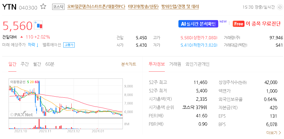 YTN 주가 분석