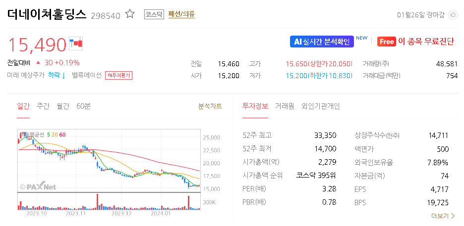 이 글에서는 더네이쳐홀딩스 주가 전망과 목표 주가, 기업 정보에 대해서 설명합니다. 주식 거래에서 중요한 부분은 현재 기업 가치보다는 미래의 기업 가치를 예측하고 먼저 행동하는 것입니다. 투자할 종목을 고르기 전에 현재 기업의 상황과 지표를 살펴보는 것이 중요합니다. 더네이쳐홀딩스 주식의 주요 현황과 투자 정보를 확인하시고 주식 투자에 도움이 될 만한 정보들을 모아 놓았으니 투자를 고려하실 때 참고하세요.