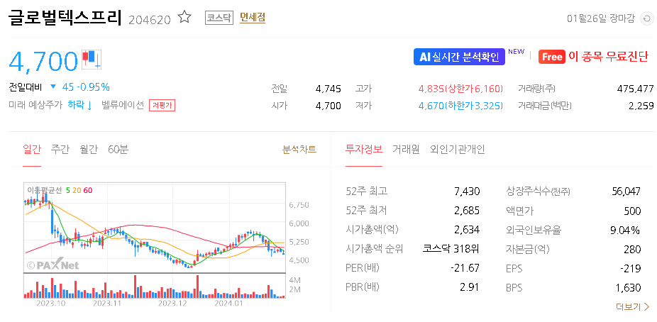 글로벌텍스프리 주가 분석