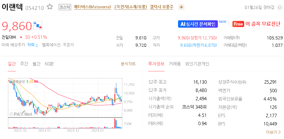 이랜텍 주가 분석