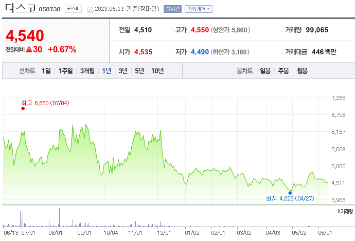 이 글에서는 다스코 주가 전망과 목표 주가, 기업 정보에 대해서 설명합니다. 주식 투자를 하려면 기업 주가와 재무 현황표에 대해서 정리해 보는 것은 아주 중요합니다. 다스코 주식의 주요 현황과 투자 정보를 확인하시고 지금 시장 흐름을 살펴보겠습니다.