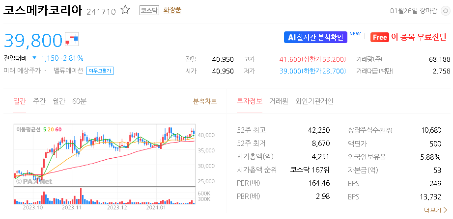 코스메카코리아 주가 분석