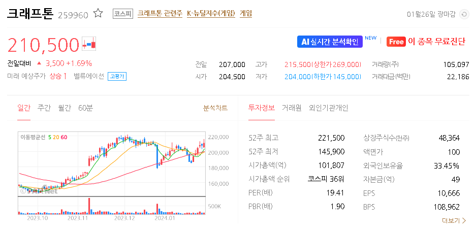 크래프톤 주가 분석