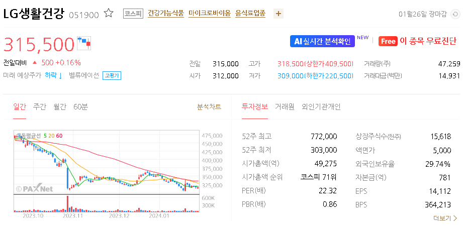 LG생활건강 주가 분석