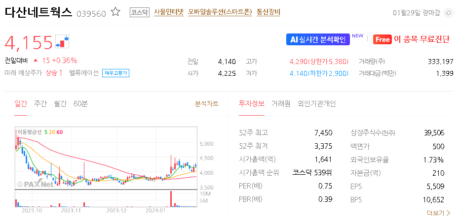 이 글에서는 다산네트웍스 주가 전망과 목표 주가, 기업 정보에 대해서 설명합니다. 주식 거래에서 주목해야 할 점은 미래의 기업 가치를 예측하고 먼저 움직이는 것입니다. 투자 대상을 선택하기 전에 현재 기업 상황과 지표를 살펴보아야 합니다. 다산네트웍스 주식의 주요 현황과 투자 정보를 확인하시고 주식 투자를 고민하고 계시다면 유용한 정보들을 모아 놓은 자료를 확인해보세요.