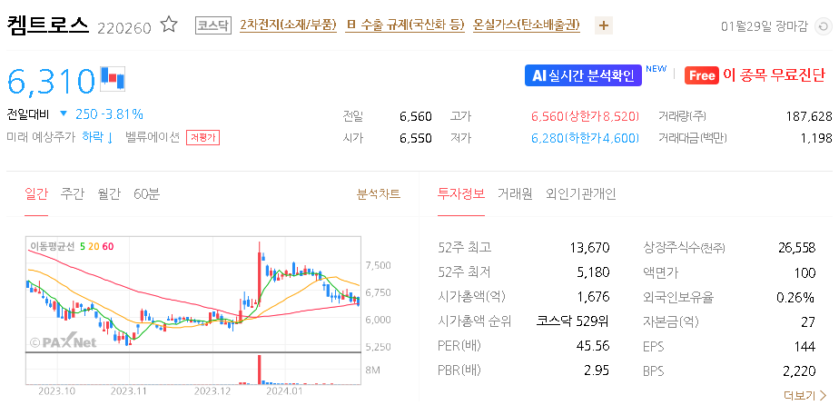 켐트로스 주가 분석