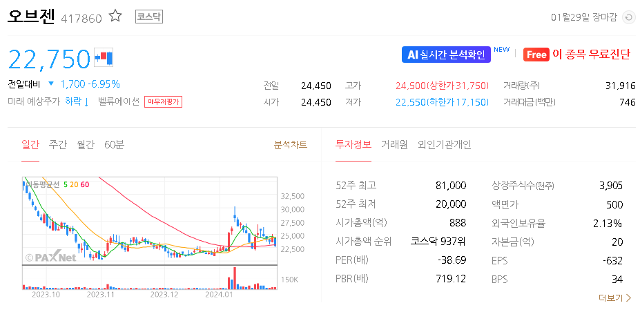 오브젠 주가 분석