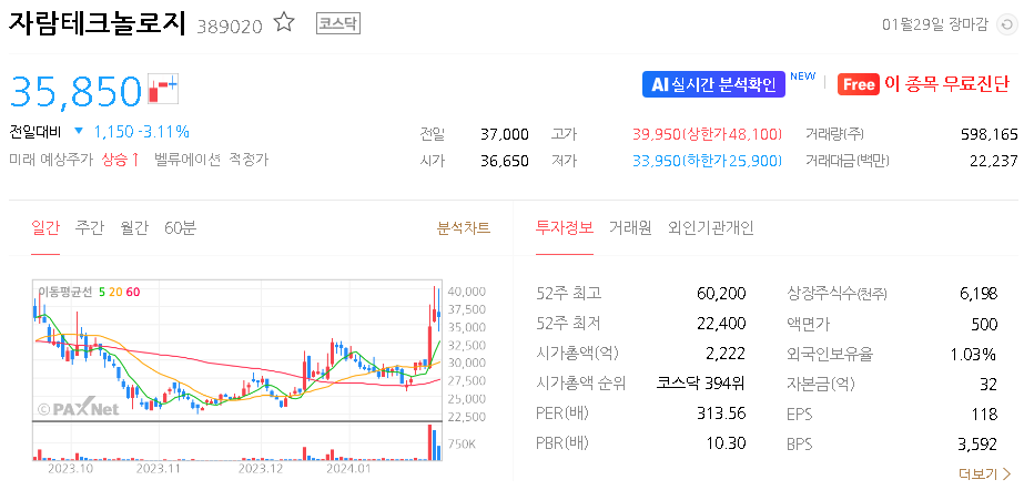 자람테크놀로지 주가 분석
