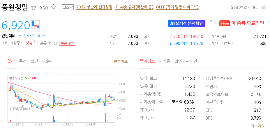 풍원정밀 주가 분석