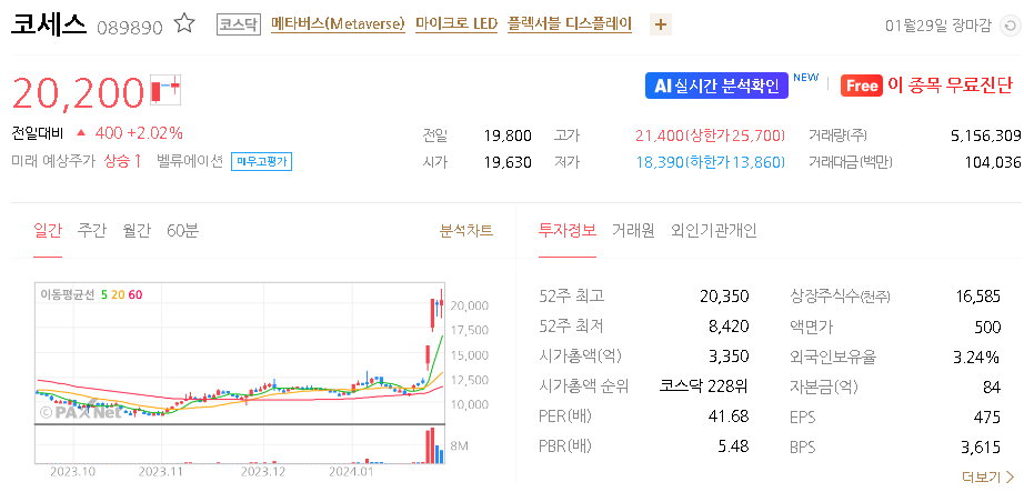 코세스 주가 분석