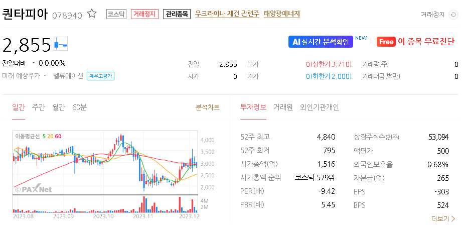 퀀타피아 주가 분석