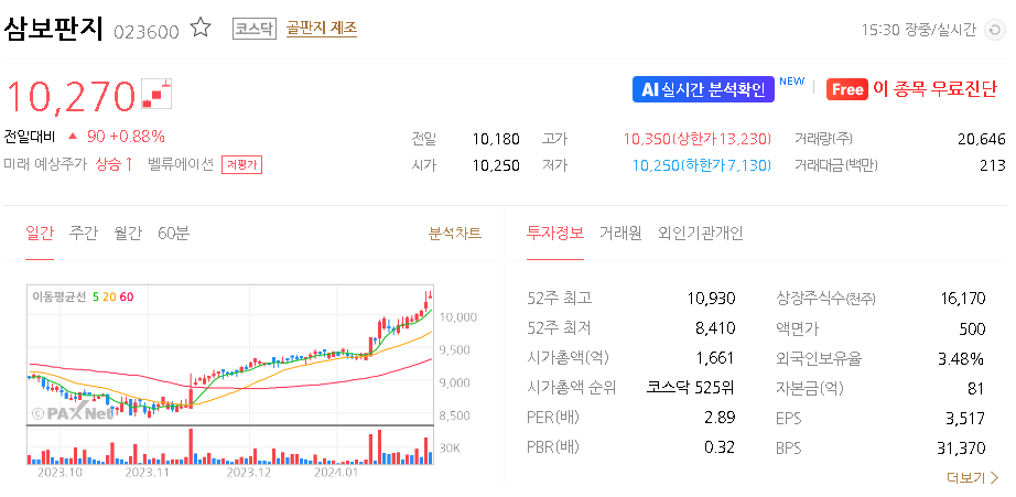삼보판지 주가 분석