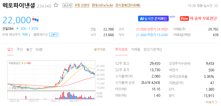 헥토파이낸셜 주식 결론