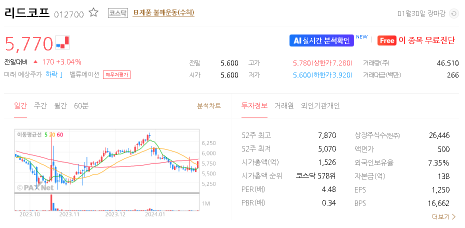리드코프 주가 분석