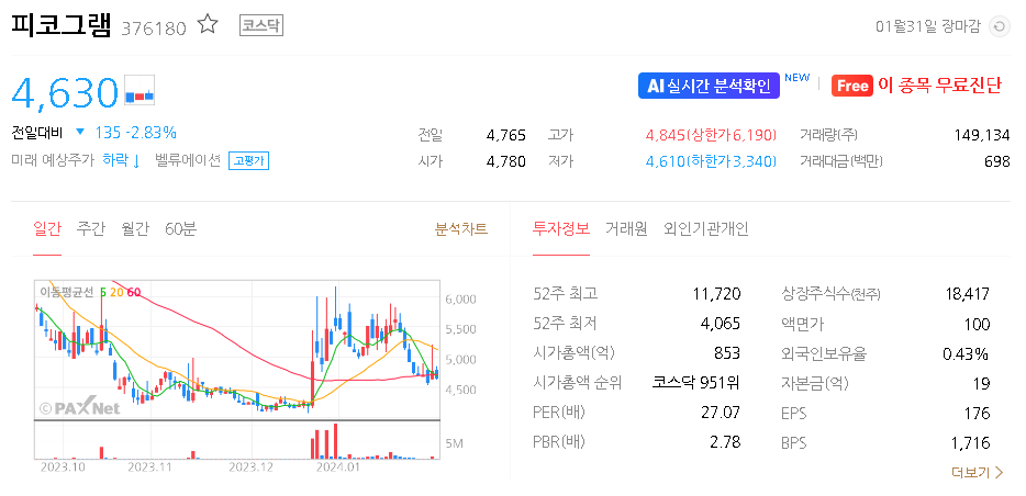 이 글에서는 피코그램 주가 전망과 목표 주가, 기업 정보에 대해서 설명합니다. 주식 거래에서 중요한 부분은 현재 기업 가치보다는 미래의 기업 가치를 예측하고 먼저 행동하는 것입니다. 투자할 종목을 고르기 전에 현재 기업의 상황과 지표를 살펴보는 것이 중요합니다. 피코그램 주식의 주요 현황과 투자 정보를 확인하시고 주식 투자에 도움이 될 만한 정보들을 모아 놓았으니 투자 시 참고하시기 바랍니다.
