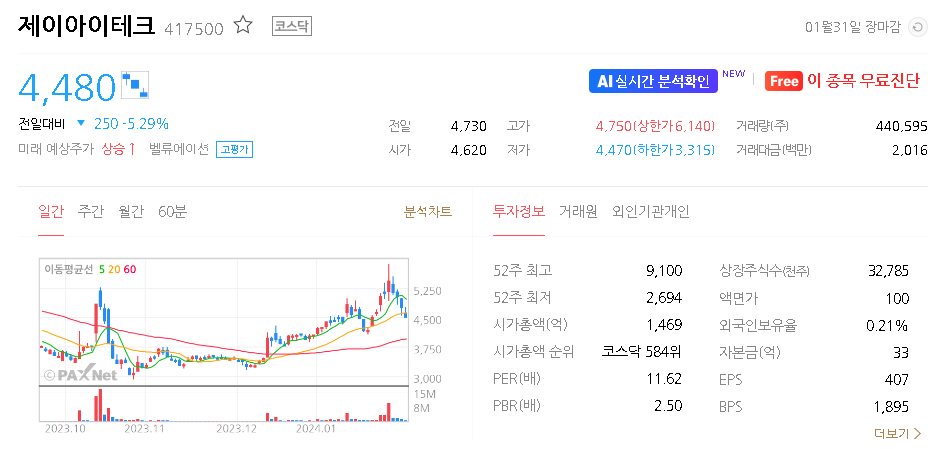 제이아이테크 주가 분석