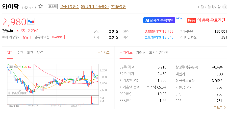와이팜 주가 분석