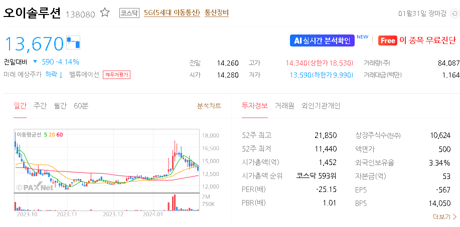오이솔루션 주가 분석