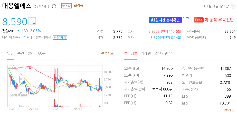 이 글에서는 대봉엘에스 주가 전망과 목표 주가, 기업 정보에 대해서 설명합니다. 주식 투자의 중심은 미래의 기업 가치를 예측하고 선제적으로 움직이는 것입니다. 투자할 종목을 고르기 전에 현재 기업 상태와 지표를 살펴야 합니다. 대봉엘에스 주식의 주요 현황과 투자 정보를 확인하시고 주식 투자에 도움이 될 만한 정보들을 모아 놓았으니 투자를 고려하실 때 참고하세요.