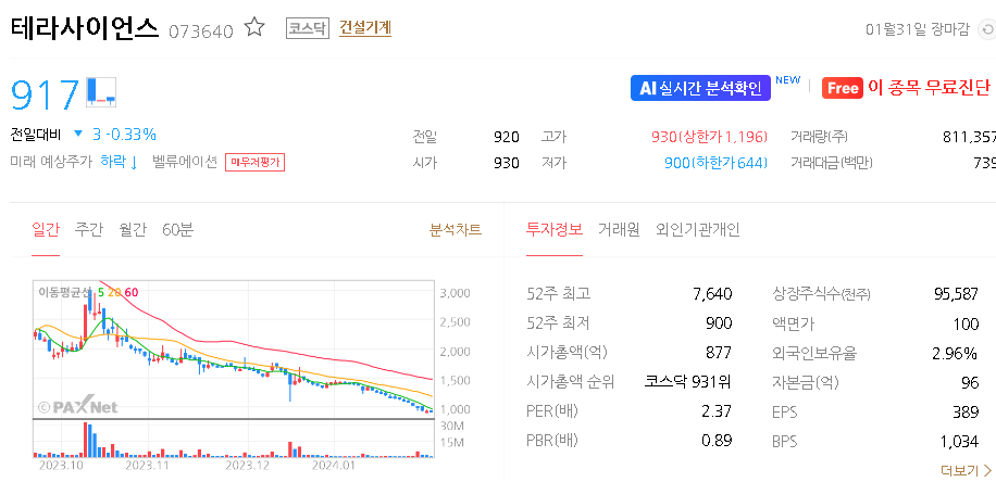 테라사이언스 주가 분석