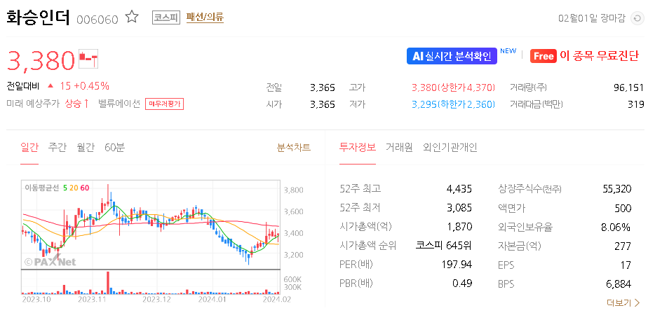 이 글에서는 화승인더 주가 전망과 목표 주가, 기업 정보에 대해서 설명합니다. 주식 시장에서 중요한 것은 미래의 기업 가치를 예측하고 선제적으로 움직이는 것입니다. 투자할 종목을 고르기 전에 현재 기업의 현황과 데이터를 확인하는 것이 필요합니다. 화승인더 주식의 주요 현황과 투자 정보를 확인하시고 주식 투자에 도움이 되는 자료를 모아두었으니 참고하셔서 투자에 도움을 받으시길 바랍니다.