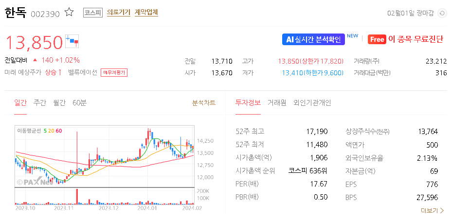 한독 주가 분석