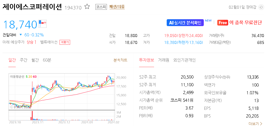 제이에스코퍼레이션 가치 분석